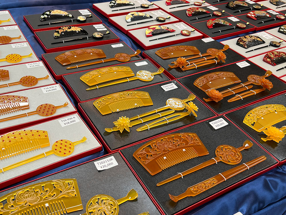 街もコロナ禍以前の様子に・・・、ここ浅草にも海外からの観光客も戻ってまいりました。 何となく浮き立つこの季節、婚礼・節句・七五三と以前の良き習慣にもまた光が差しつつあります。パーティーやお呼ばれに、とびっきりのオシャレをして出掛けたくもなります。 そんな中の今回の展示会には、各社積極的な新製品構成で皆様をお迎えできました。これを機に更に明るく元気な世の中になることを願っています。